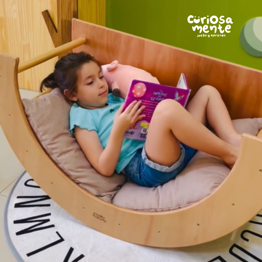 Una Trepadora que aparte de parquecito también tiene la función de mesa.
